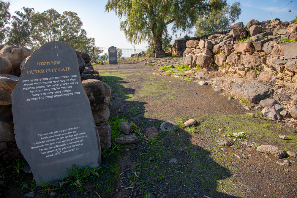 View northeast: Looking out Bethsaida’s inner-city gate with four chambers, two on each side. Three of the chambers served as granaries. The Assyrian King Tiglath-Pileser III destroyed the city in 732 BC.