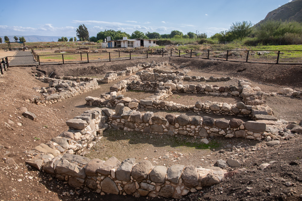 View east: The port of Magdala. Flavius Josephus mentioned a large fleet of ships in the harbor of Magdala. Archaeologists were able to distinguish the lake bed by the pebbles, shells, and loamy soil.