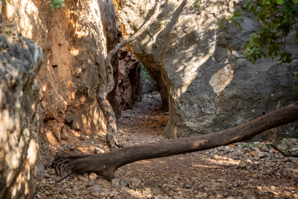 View north: Detail of the above photo. Large oak trees (top left) are typical and cover much of the region. The same trees are visible in the above photo (bottom left).