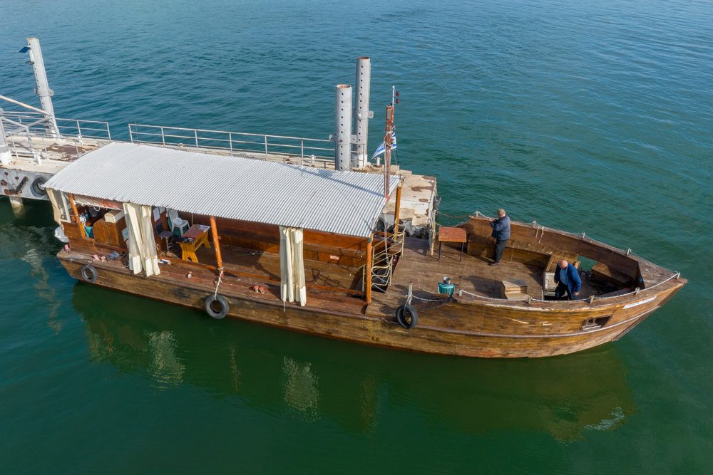 Large Boats like this one take tourists from Kibbutz Ginosar on the northwest shore of the Sea of Galilee to the northern shore, where they board their bus at the Capernaum National Park.