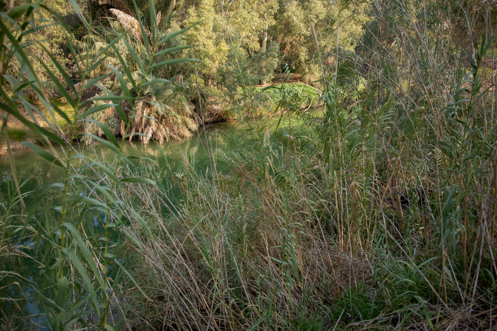 View southeast: The Jordan River with dense vegetation not far from Yardenit. This photo provides a better feel for how the Jordan River may have looked anciently (see top photo on page 22).