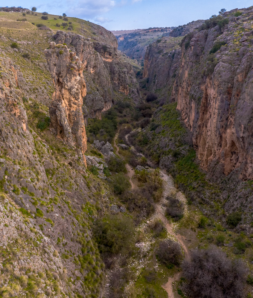 VIEW NORTH: TRAIL THROUGH WADI AMUD CANYON. THIS PHOTO WAS TAKEN HALF A MILE (ALMOST A KILOMETER) NORTHEAST OF LIVNIM, WHERE THE HANSENS LIVED OVERLOOKING THE SEA OF GALILEE.