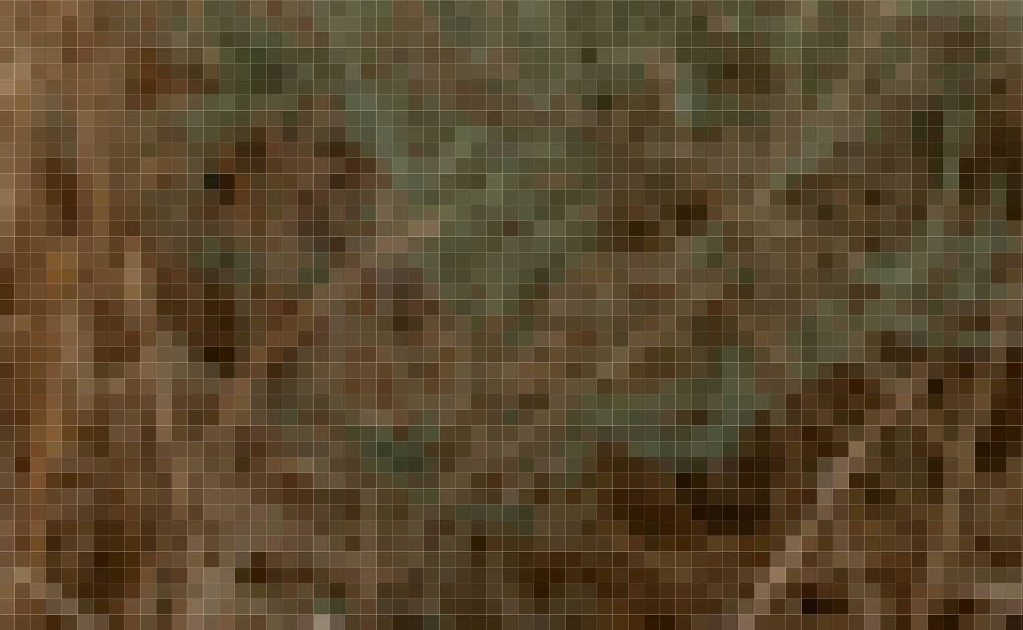 The image on the left is a sample taken from the above photo in the area of the green bush (bottom center—viewed on the pixel level). Up close, it isn’t very pretty and doesn’t tell us very much. To see the photo correctly, you have to step back and look at it from a distance.