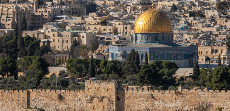 View north: Golgotha (biblical Greek) or Calvary (Latin) (“place of the Skull”) is the hill on which Jesus was crucified. It is a short distance northeast of Damascus gate in Jerusalem, above the Arab bus station. Today, an Arab cemetery sits on top of the hill. Read about these sacred places in Blessed Pilgrimage: Following Christ to Gethsemane.