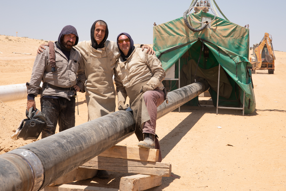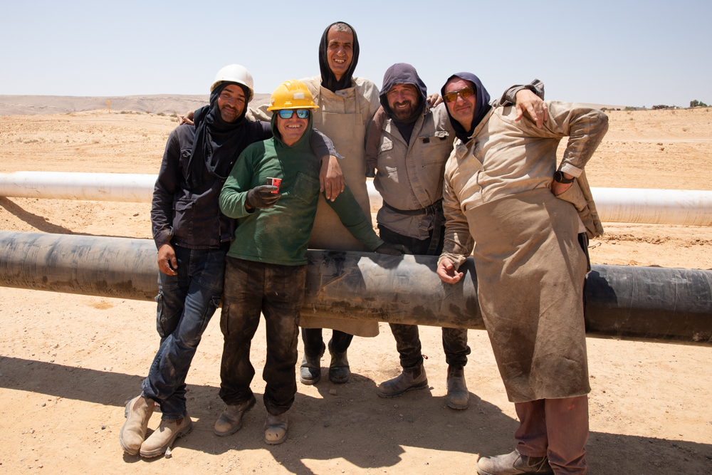 Yesterday I went to the Nabataean site of Mampsis in Israel's Negev desert. Since the bus driver to Eilat wouldn't let me board without paying the full price to Eilat (I was getting off at Dimona), I took the train to Beersheba and then a bus to Dimona. From there, I hiked across the desert to Mampsis (3.9 miles/6.25 kilometers). Last time I posted, I wrote a little bit about why I hike. Today, I hiked to experience the land of Abraham, Isaac, and Jacob. However, something unanticipated occurred, which is not uncommon, and another reason for hiking. It's when I get to interact up close with local folks. I came across a crew of men welding large pipes together.